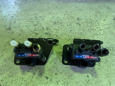 それに加え今回のお車はエアサスペンションに貯めたエアーを保持する、エアーを送る弁が付いているバルブユニットの弁が閉じた状態で壊れてリア左の片方にしかエアーを送れなくなっていました。