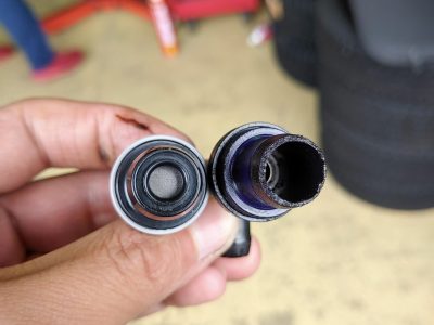 取り外したPCVバルブになります。左が新品、右が壊れているものです。