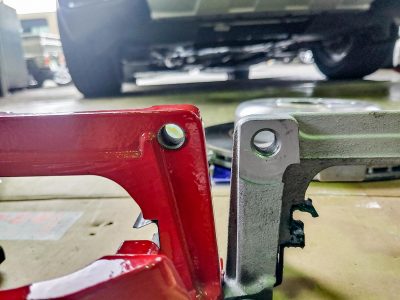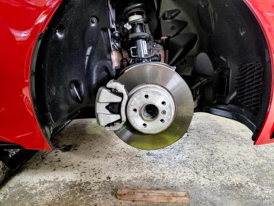入庫されたスープラはSZ-Rというグレードの車両になります。この車両にRZのブレーキをごっそり移植するという作業です。なぜ同じスープラでブレーキを替えるのかというと、SZよりもRZの方が性能の良いブレーキが装着されているからです!