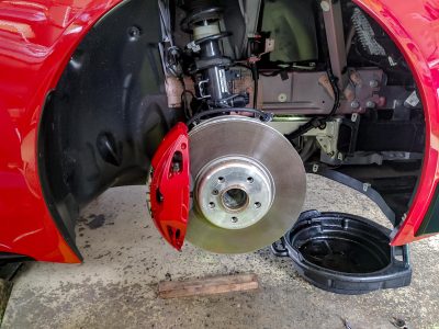 赤いキャリパーになるので足回りの雰囲気もガラッと変わります‼