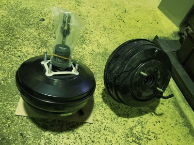 交換したマスターバックになります。パッと見ブレーキとは関係無さそうな部品ですが、かなり重要な部品になります。古くなってきた車両、もしくは錆が多い車両は特に要注意です。