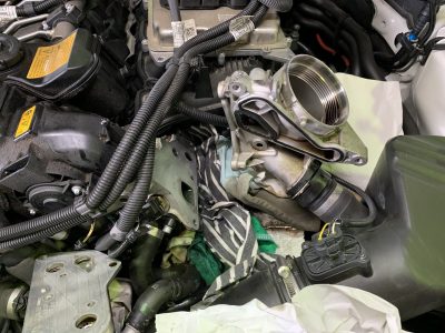 中身を清掃という方法もあるのですが、構造的に完全に汚れを落とすのは難しそうなので、EGRクーラー本体を新品交換させて頂きました。交換作業は中々の強敵でした(笑)