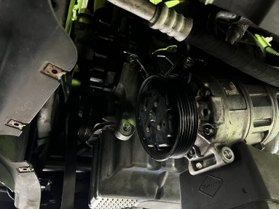 交換には少し厄介でエアコンコンプレッサー脱着が必要になります。