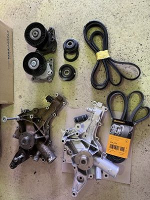 なので今回はウォターポンプ、ファンベルト、ファンベルトテンショナ、ファンベルトアイドラプーリー 冷却水原液5l 交換いたしました。