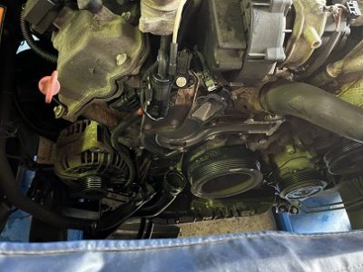 確認するとウォータポンプの軸がガタガタになって水漏れが起きてしまった。駄々漏れ冷却水がほとんどない状態でした。問診したところ、漏れてからそんなに走っていないということでエンジンにはダメージはありませんでした。