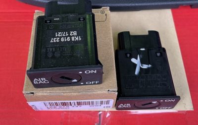 早速の出番が当社の自慢の輸入車全般診断できるオーテル診断機で診断しました。エアバックスイッチが今回のエアバック点灯原因です。経験上、フォルクスワーゲン全般でこのスイッチがよく壊れます。現車に付いてるものと送られてきた部品品番も違います。てなわけで部品交換して、故障コード消去して終了です。